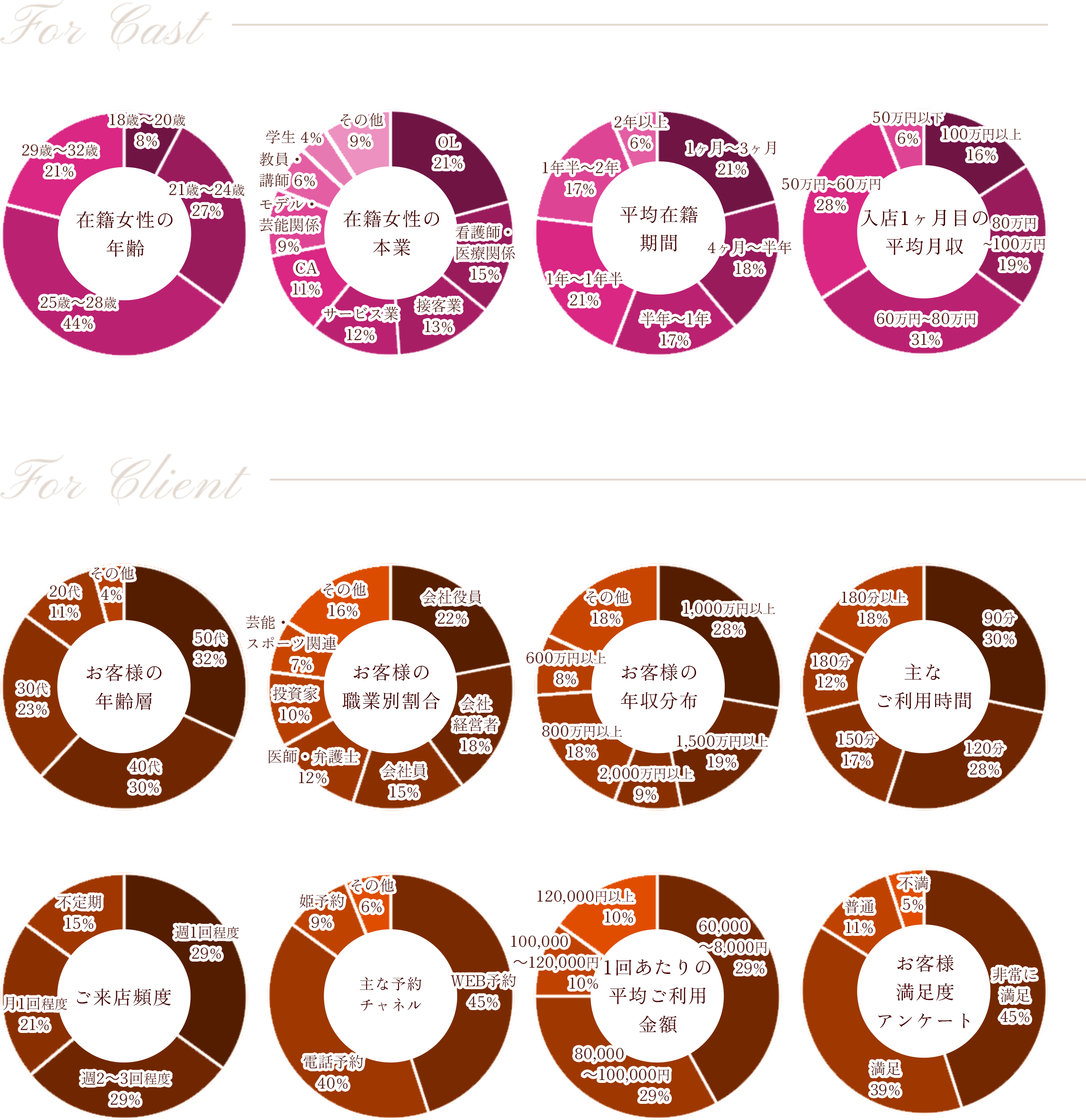 マダム麗奈は超高級店のパイオニアとして、2001年に誕生しました。長い歴史と実績は「信頼できる環境」の証でもあります。